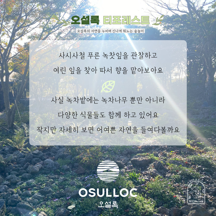 오설록 자연 속 녹차밭과 곶자왈 속